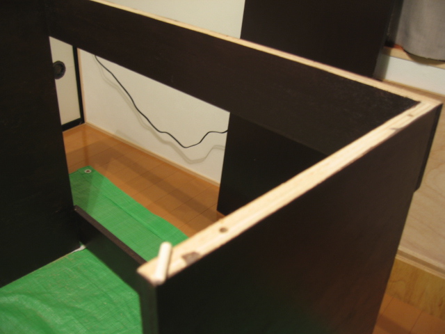 実際、板の角を落としたり、棒を切ったりの作業はカナイが板の切断跡にヤスリをかけている内に行いました。